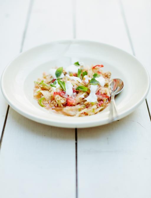 16. Divide between bowls and serve with a dollop of natural yoghurt, if you like.